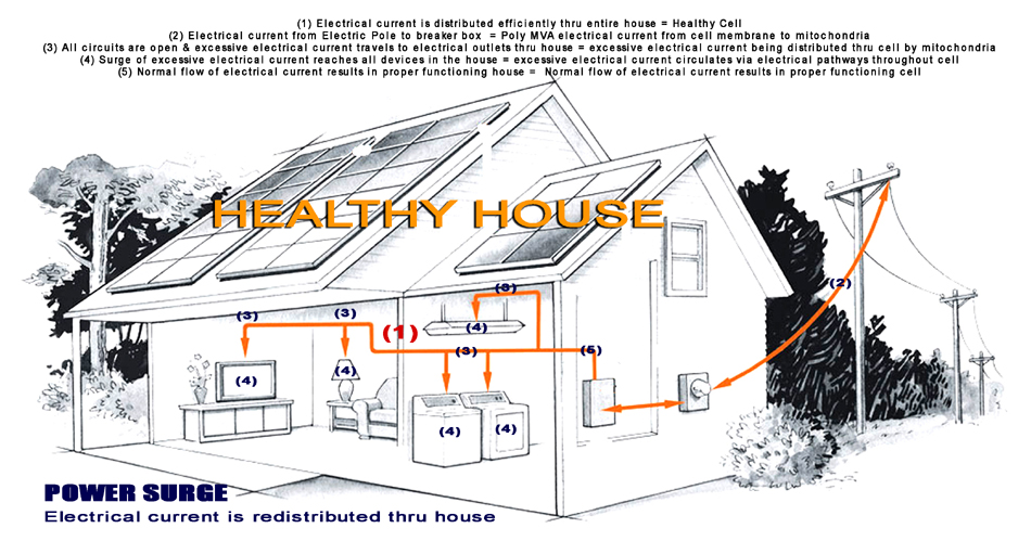 All electricity (Electrons) flows through the Mitochondria 1st and is then, redistributed throughout the cell/house.